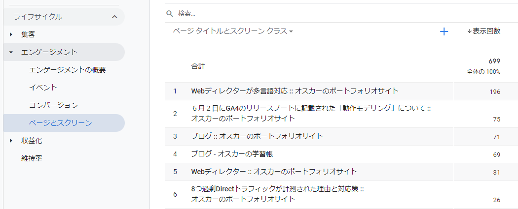 ここにきてわかったんですが、このデータ、「ページタイトル」のPV数も入っていました。
