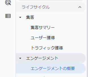 メニューはデフォルトレポートの、エンゲージメント概要にありました。