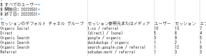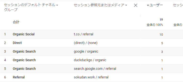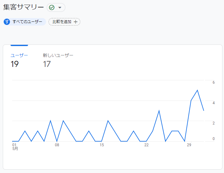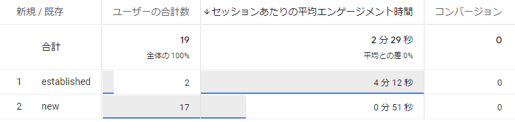 この上の画像、すでに出ています。この画像の場合、新規ユーザ数:17、既存ユーザ数:2です。