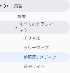 GAへアクセスします。「集客」⇒「すべてのトラフィック」⇒「参照元/メディア」をクリック