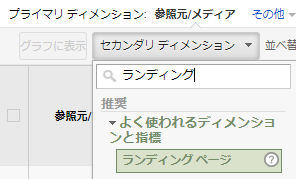 最後に、「セカンダリディメンション」で「ランディングページ」を選択すれば、間違った内容が表示されます。