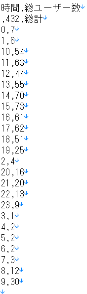 ダウンロードする時もちゃんと24時間のカラムで集計した状態で落としてきます。