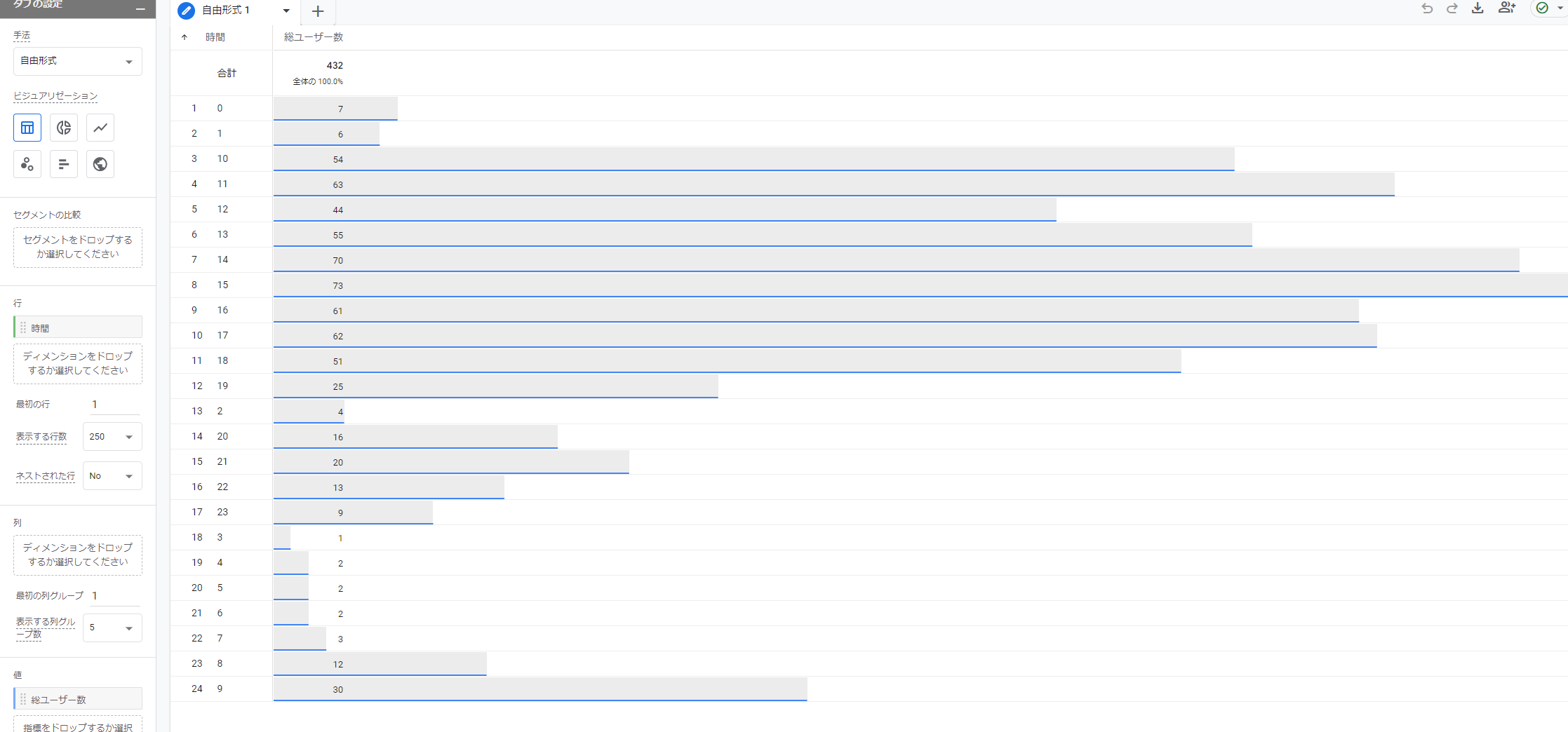 UAで「時間データ」をダウンロードする時、時間データは「00」、「01」~「23」になっているため、