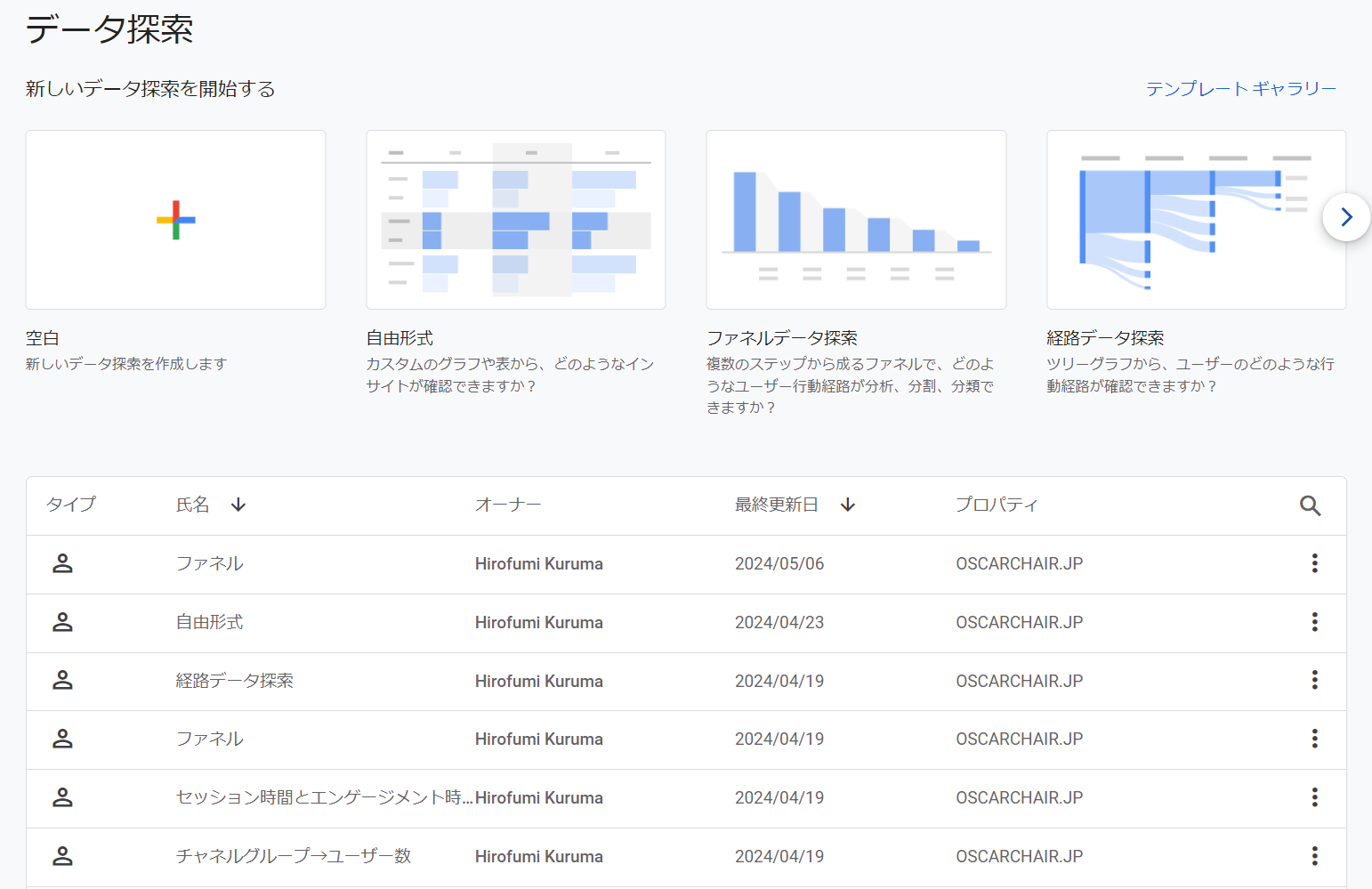一方、「探索」機能では、ディメンションや指標を自由に組み合わせることで、深堀分析を行うための強力なツールで、レポート機能よりも詳細で柔軟な分析が可能です。