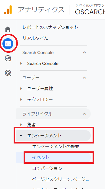 レポート→(ライフサイクル)→エンゲージメント→イベント