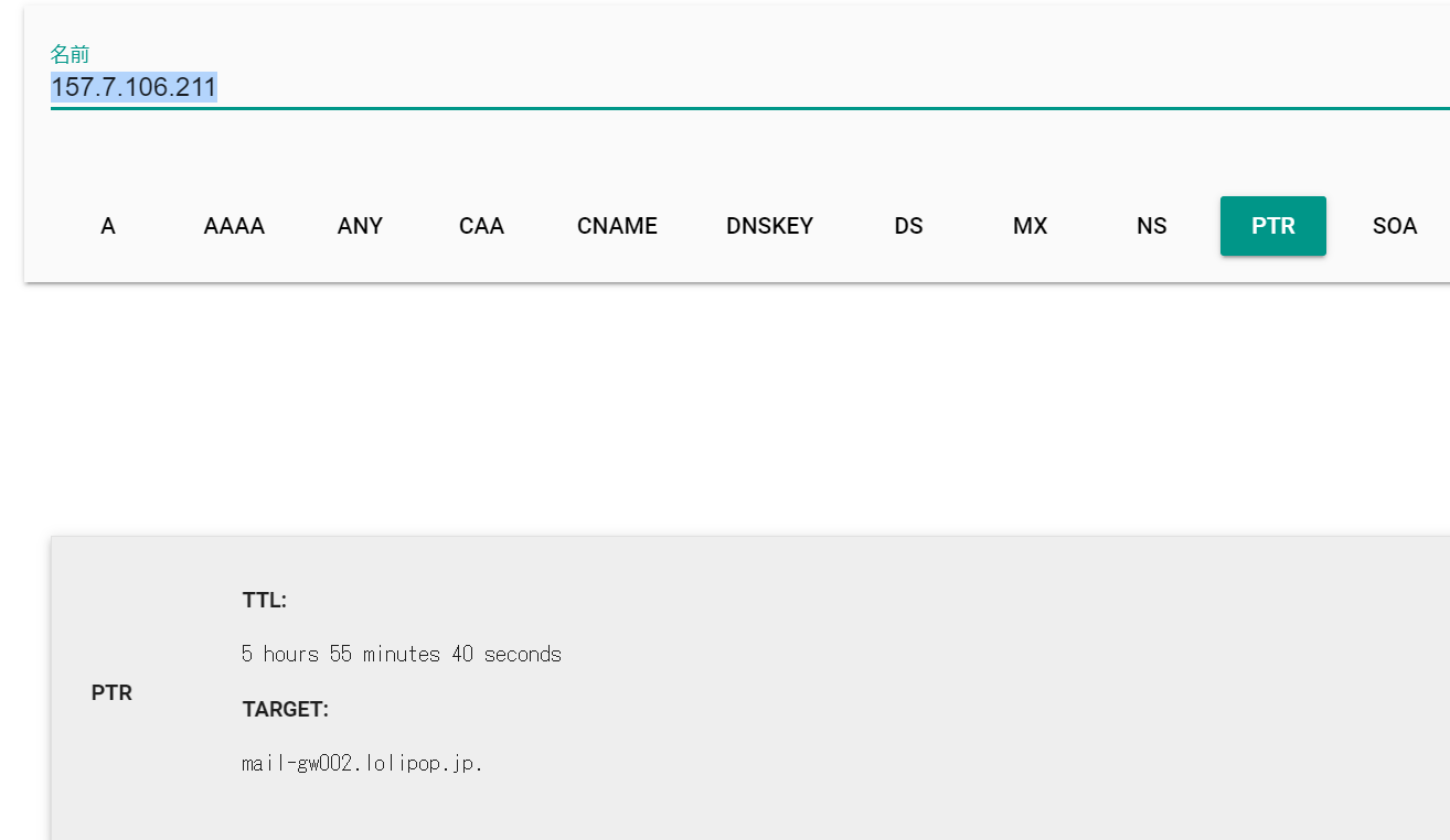 このツールでPTRのレコードを確認することができます。