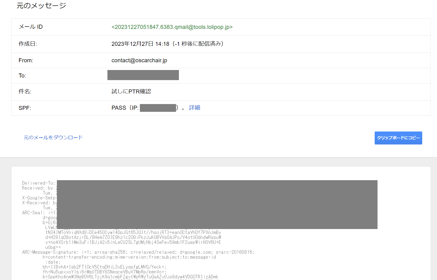 例えば、「oscarchair.jp」はlolipopのメールサービスを使っているので、送信元はlolipopになります。
