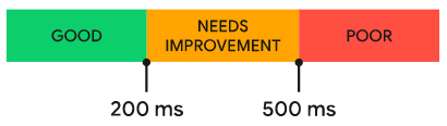 0.2秒以下は良いINPとされ、0.2~0.5秒は用改善項目とし、0.5秒以上はよくないINPになります。