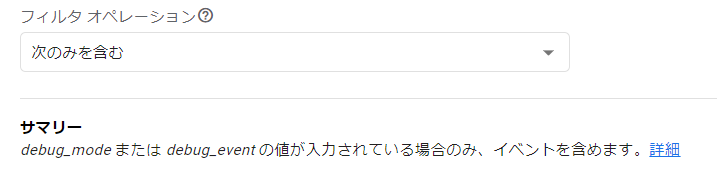 逆に、下図の「次のみを含む」を選択された場合、debug_modeのデータだけがGAに流れます。