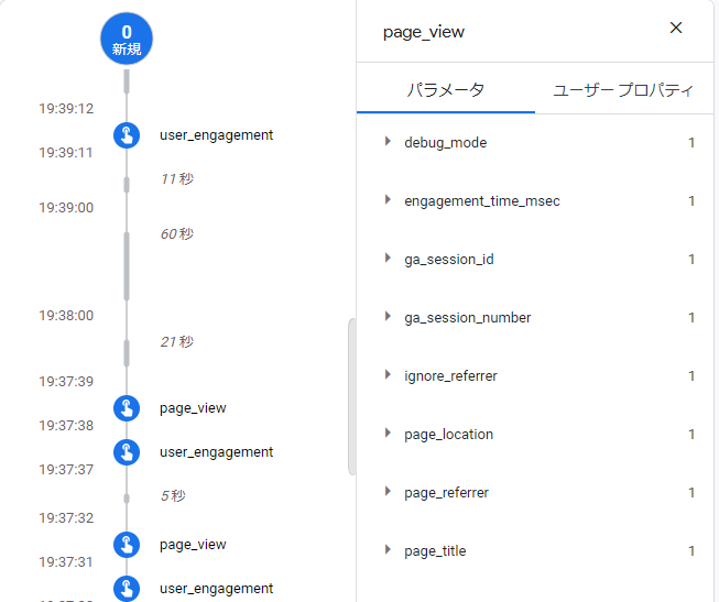 画像では、”page_view”のイベントの中身です。