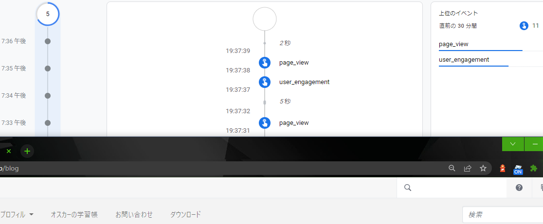 DebugViewはGA4で新しく用意された機能で、画面で操作しながら、(ほぼ)リアルタイムでイベントやイベントで送ったデータの詳細をすぐに確認できる画面のことです。