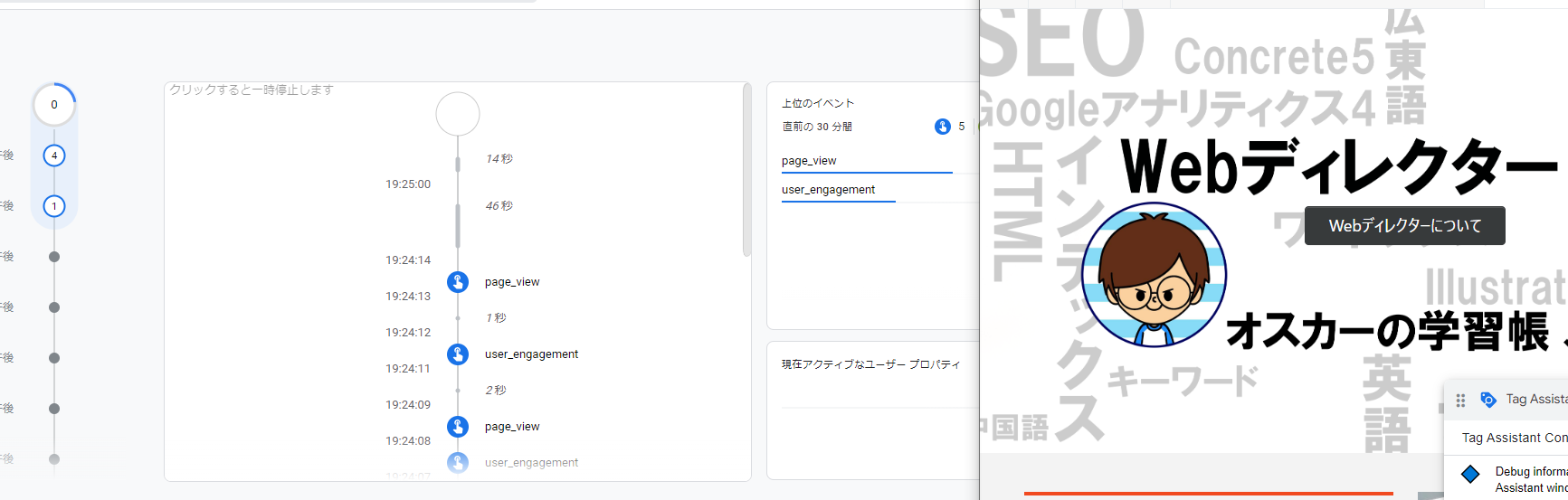 GA4の「DebugView」は、どんなデータがGA4に流れてきたかを確認できるページです。