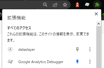 なかった場合、パズルの(ような?)アイコンをクリックして、”Google Analytics Debugger”をブックマークしましょう。