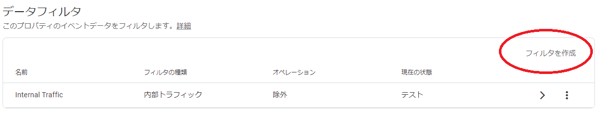 ②「フィルタを作成」をクリック