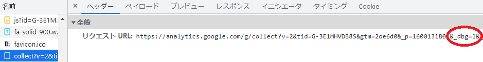 ちなみに、どんなデータが流れているかというと、下記のように、"_dbg=1"というデータが送られます。
