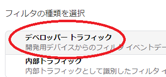 ③「デベロッパートラフィック」をクリック